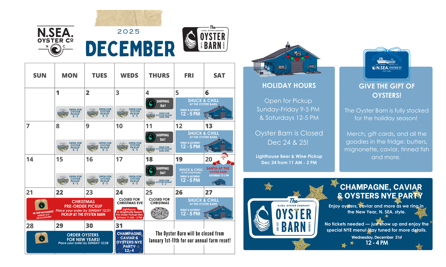 When you’re at the barn, feel free to ask a team member for a grounds tour — we’re always happy to show you around and share more about our operations, sustainability efforts, and the story behind N. SEA. Oyster Co. -